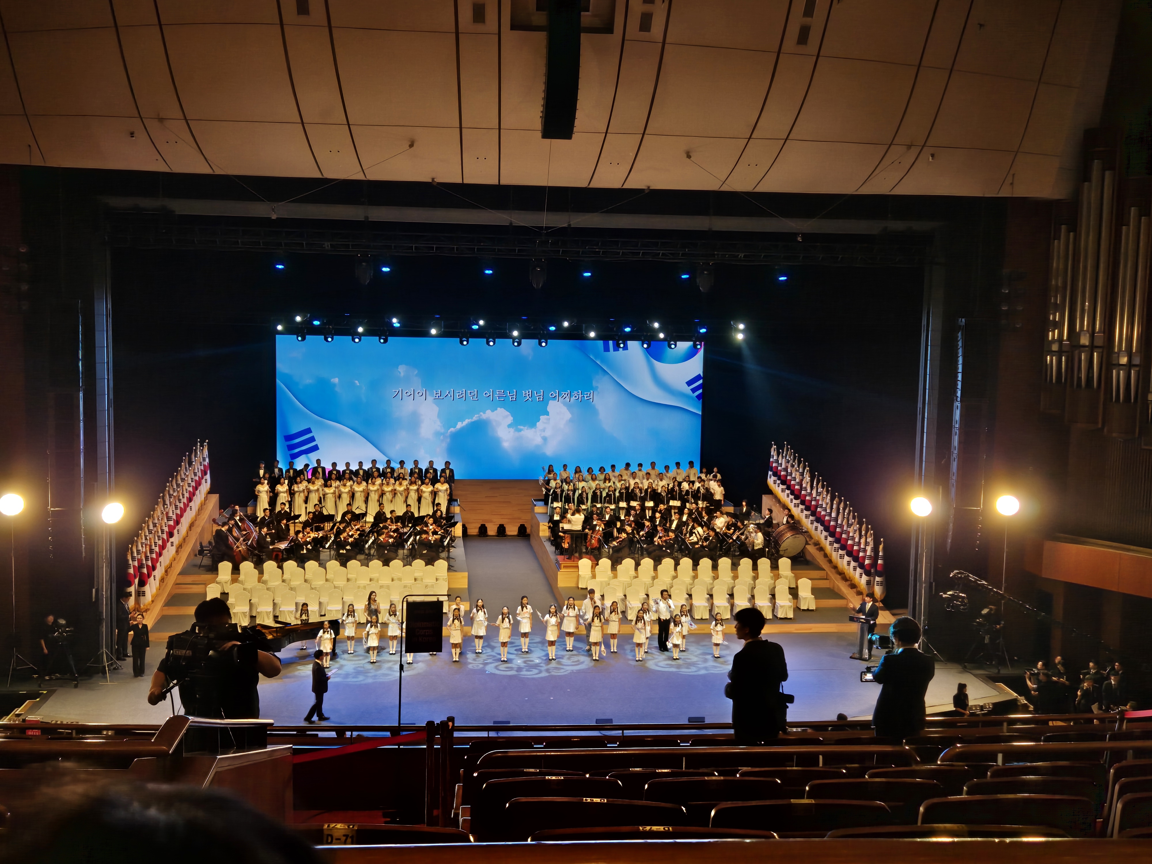 제가 자리에 앉았을 때는 경축식 공연 리허설을 하고 있었습니다.