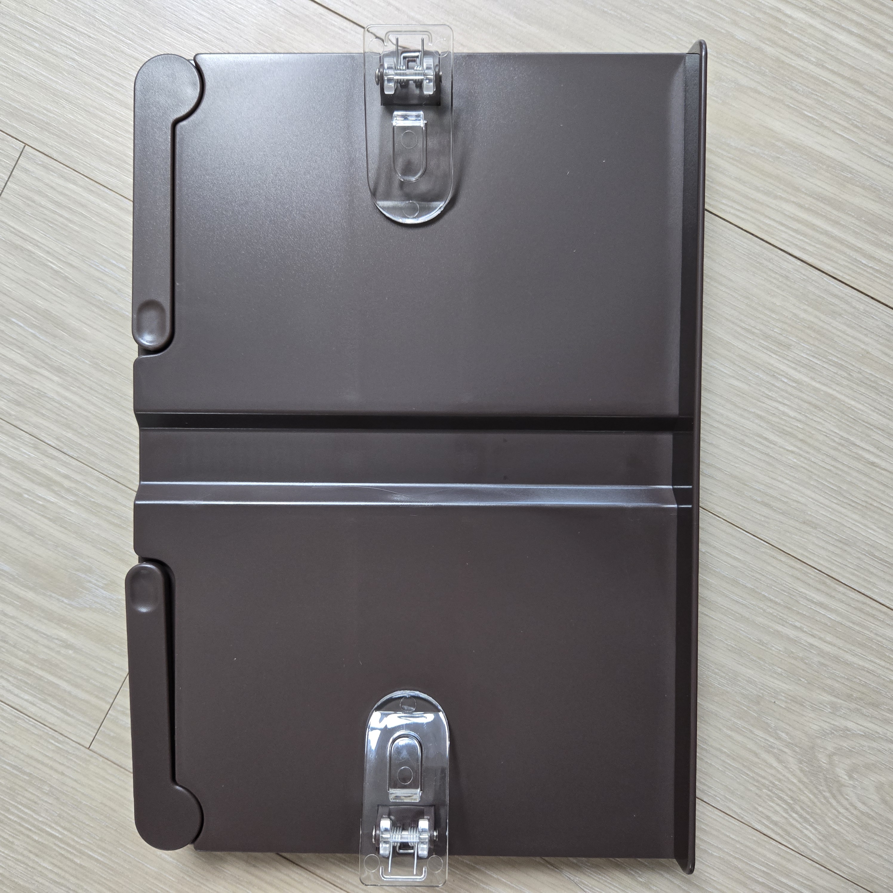 독서대 양쪽에 책을 잡아 줄 수 있는 집게가 있고, 독서대 윗면에는 큰 책을 거치할 수 있는 날개도 있습니다.